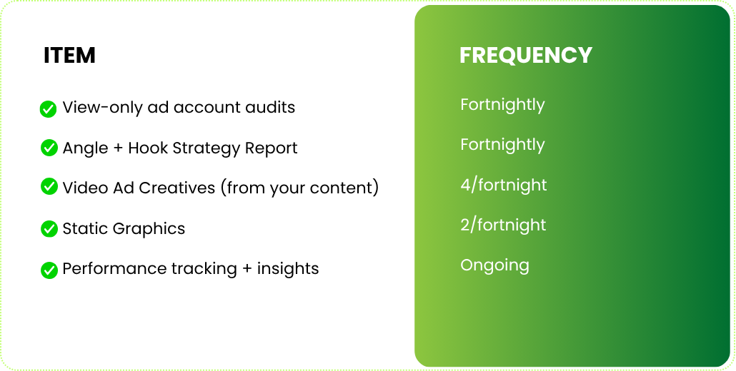 No delays. No bloated production costs. Just strategic, fast-turnaround creative that’s designed to scale.