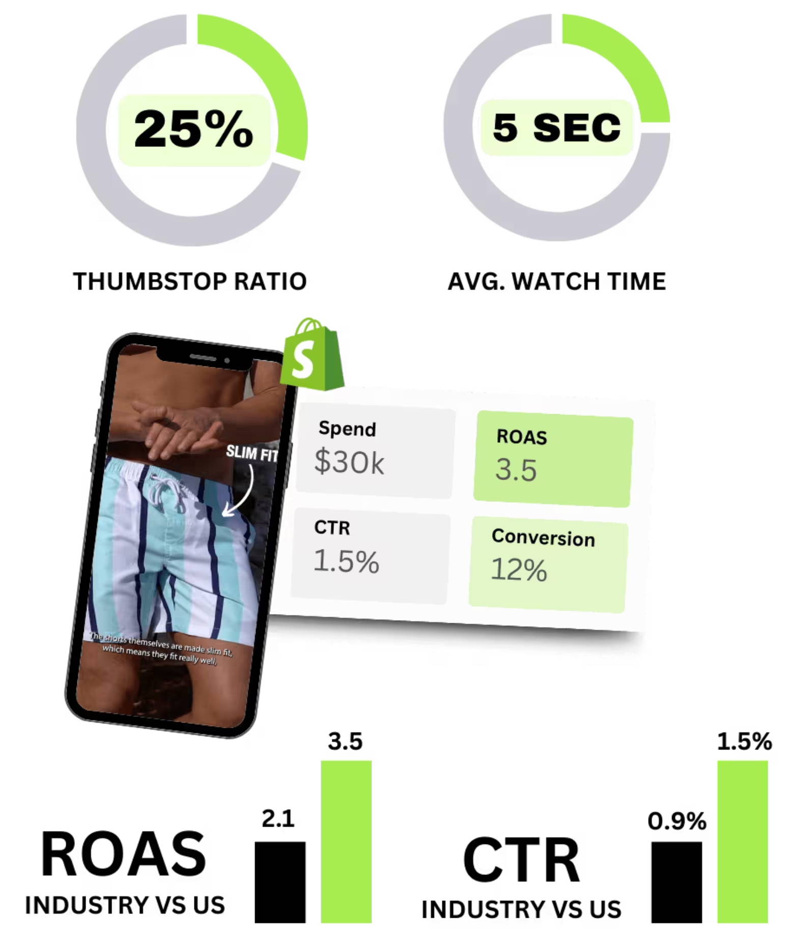 Instead of relying on endless new shoots, we take the content you already have and use performance data to reshape it into high-performing ads that drive results.
